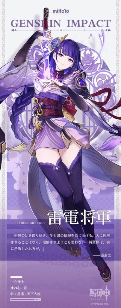 味方の元素爆発エネルギーを回復(チャージ)しながら、自身も強力な元素爆発で高火力を出す万能な神です。 特に「雷電ナショナル」(雷電将軍、香菱、ベネット、行秋)などの強力なパーティ編成が組みやすく、無課金・微課金プレイヤーの強い味方でもあります。元素爆発に特化したパーティのエネルギー供給役として、そのバッテリー能力は非常に重要です。その威厳あるビジュアルと荘厳なボイスで、人気投票では常に上位の常連です。
